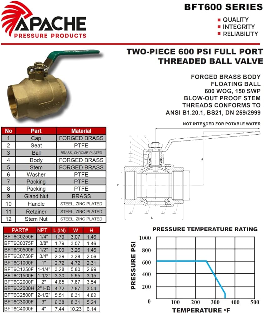 التصنيف الصناعي للخدمة الشاقة: مصمم لتقديم خدمة عالية الأداء؛ مُصنف بـ 600 رطل لكل بوصة مربعة WOG (غير قابل للصدمات) و150 رطل لكل بوصة مربعة WSP، مما يجعله مثاليًا لتطبيقات الهواء المضغوط والهيدروليكية وحقول النفط.