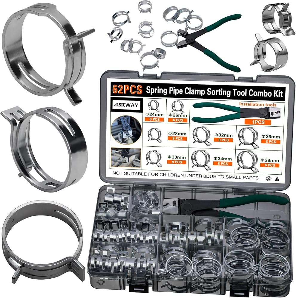 【مواد عالية الجودة】مشبك الأنبوب الزنبركي مصنوع من فولاذ زنبركي 65 مليون مع عملية طلاء، وهو قوي ومتين ومقاوم للتآكل وخالي من الصدأ في البيئات الرطبة، ويمكن تخزينه لفترة طويلة. عملية التلميع لن تخدش الأنبوب الخاص بك ولها ختم قوي.
