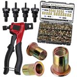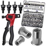 【About this project】:The rivet nut tool kit includes a 1pc set of manual rivet nut tools, providing stainless steel rivet nuts in 4 imperial thread sizes: 100pcs 6-32, 100pcs 8-32, 150pcs 10-24, and 150pcs 1/4-20, for a total of 500pcs of imperial thread stainless steel rivet nuts, which can meet your various daily needs.