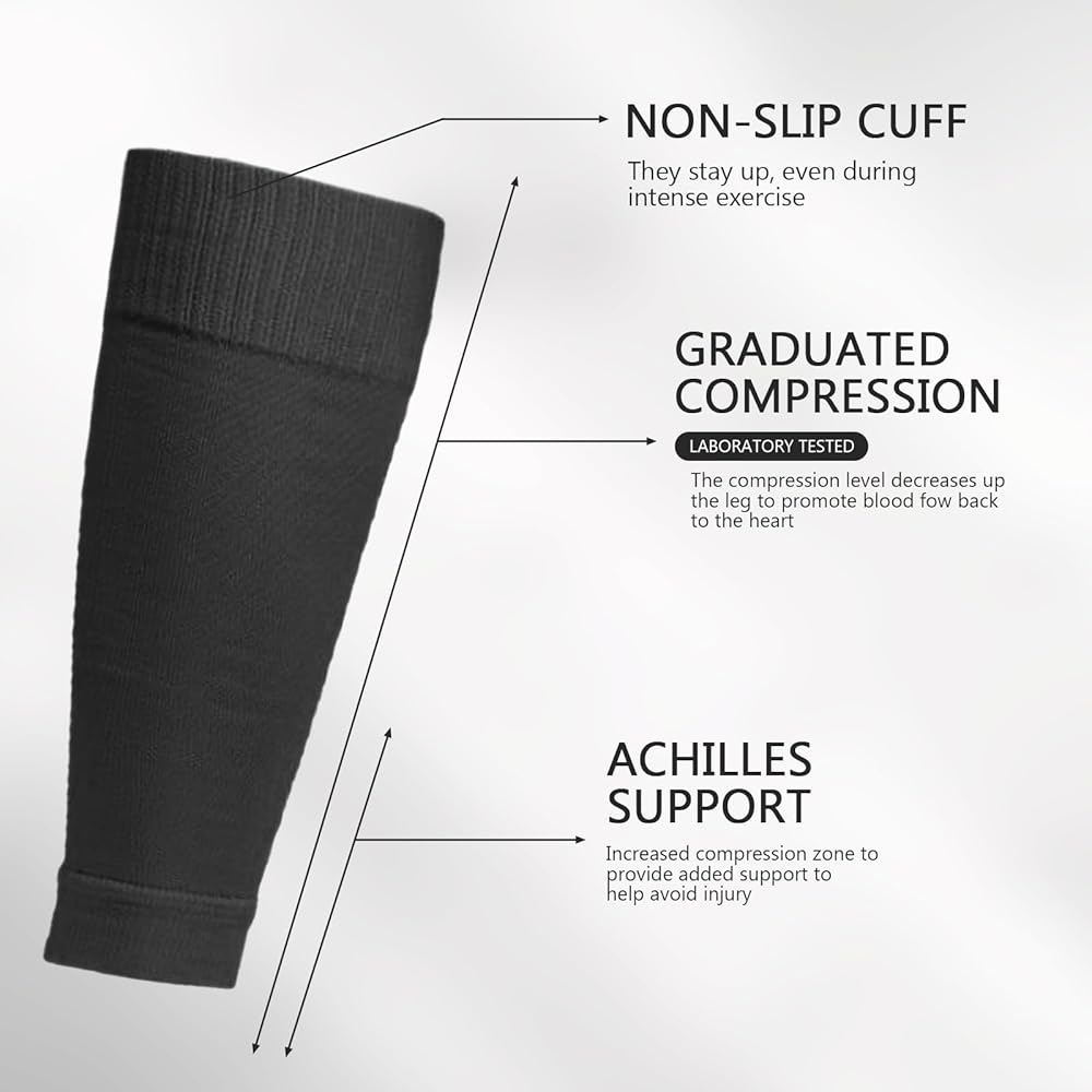 It adopts an anti slip design. Whether you are doing strenuous exercise or standing for a long time, this calves compression sleeves can be firmly fixed on your legs, allowing you to enjoy the fun of exercise.