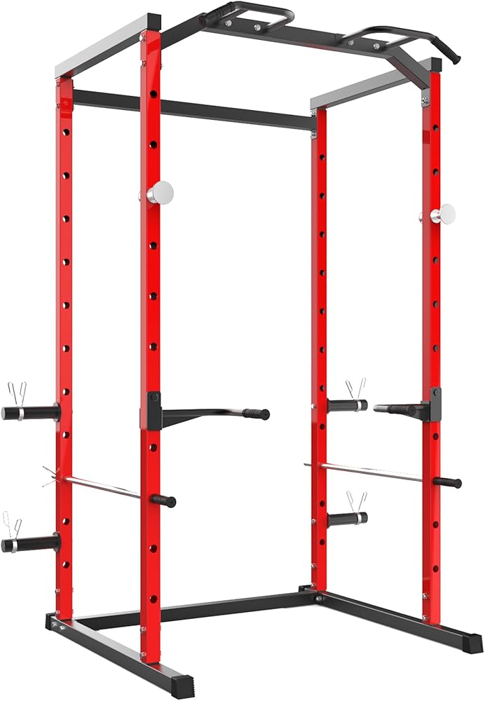 【Multifunctional Full-Body Training】Power Cage integrates a pull-up bar and dip bars for versatile full-body workouts like pull-ups, dips, and rows in one station.