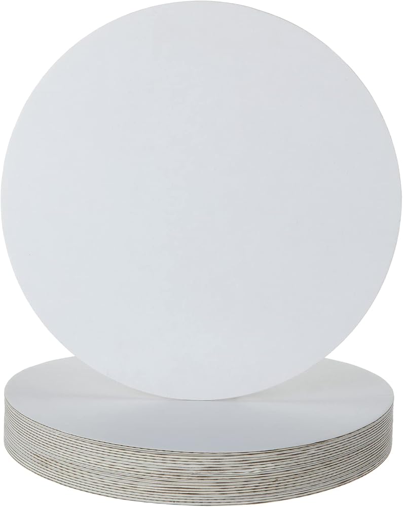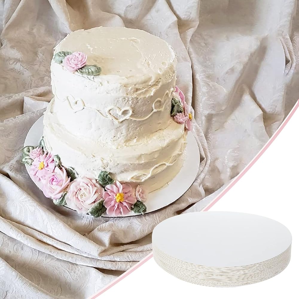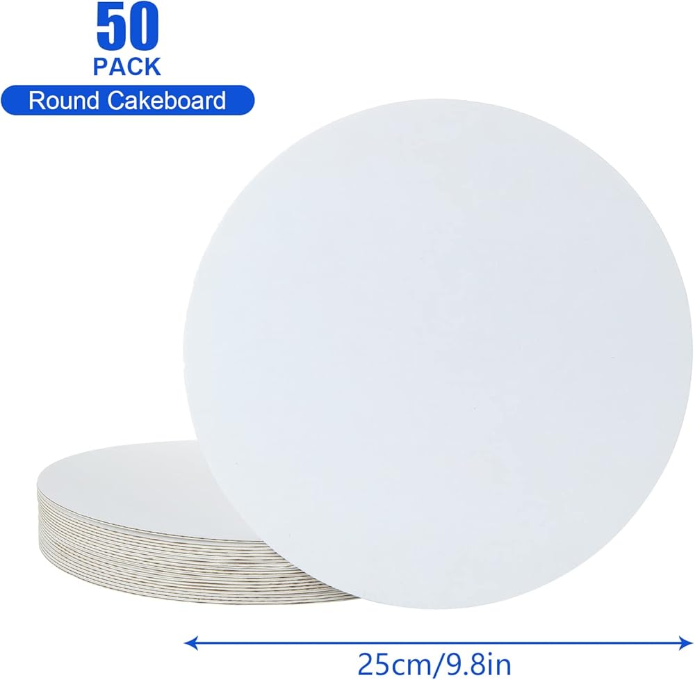 ديرباي 50 قطعة من ألواح الكيك المستديرة مقاس 10 انش، قواعد دائرية من الورق المقوى للكعك، ملحق الخبز المثالي لمنح مشاريع الخبز الخاصة بك مظهرًا احترافيًا، ضروري لعرض الكعك وحتى المشاريع الحرفية. محتويات العبوة: 50 × لوح كيك دائري