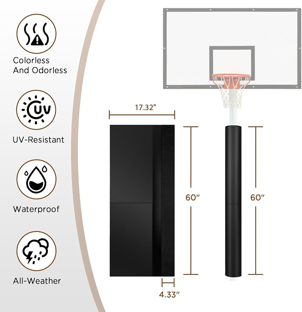 Multi-Scenario Use - Whether for gym sports pole padding, gym pole wrap, pole column wrap, or pole protector padding, this pole pad for basements delivers consistent protection, combining weatherproof toughness with all-weather resilience for outdoor basketball goals.