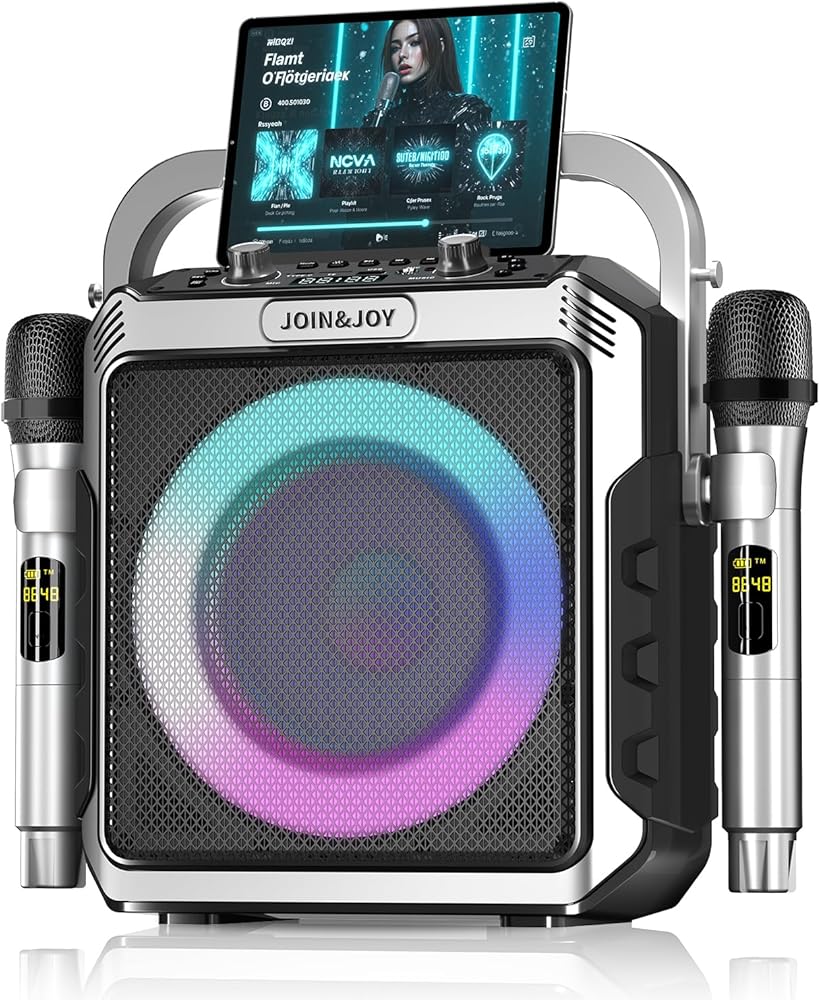 جهاز كاريوكي محمول، مع ميكروفونات لاسلكية، مكبر صوت بلوتوث للحفلات مع مصابيح LED، مضخم صوت عالي، USB/AUX، مكبر صوت كاريوكي خارجي للبالغين والأطفال، المنزل والحفلات