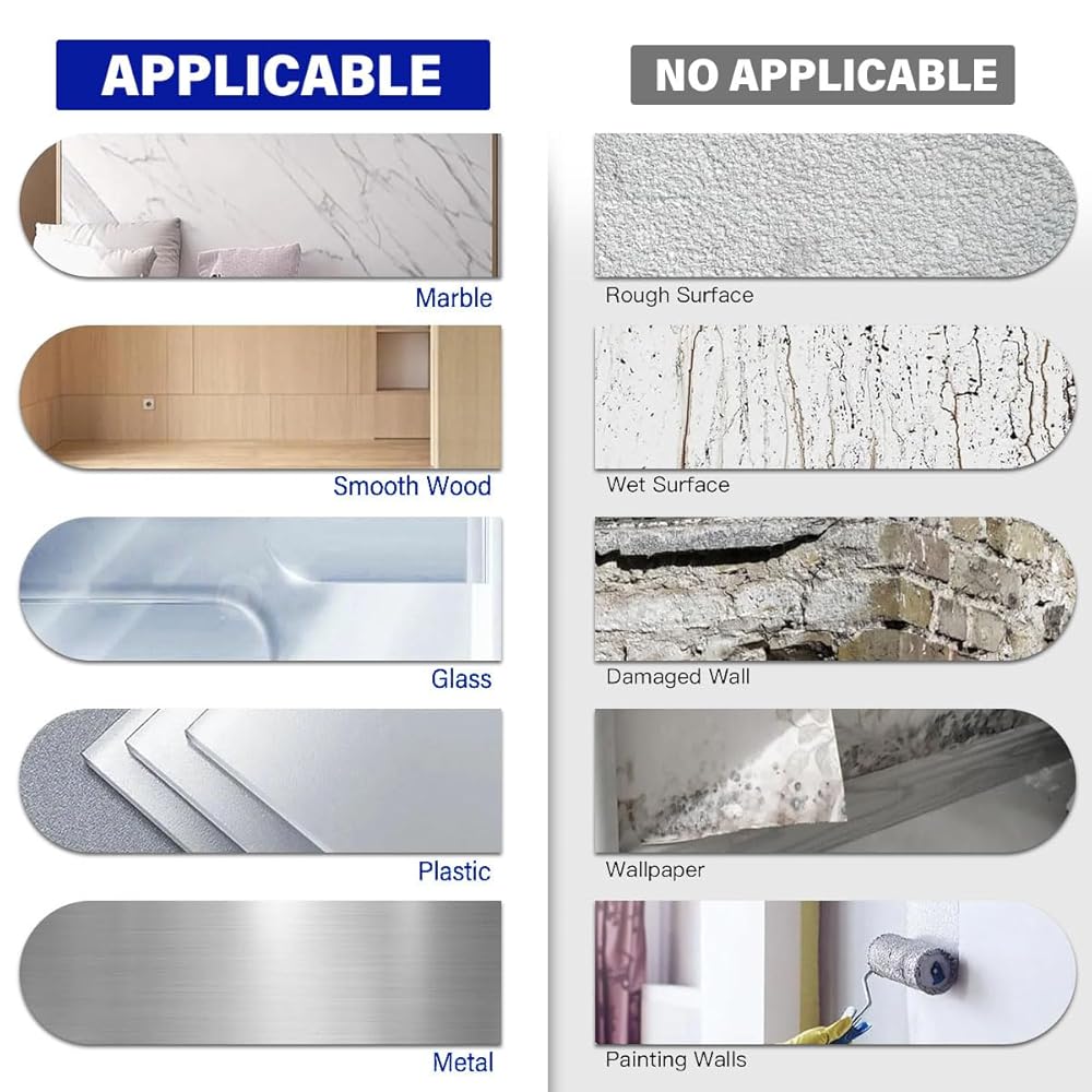نظف سطح التثبيت قبل الاستخدام، امسح السطح باستخدام معزز الالتصاق، انتظر بضع ثوان ثم اضغط على الشريط على السطح المطبق