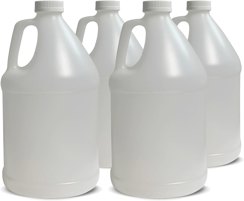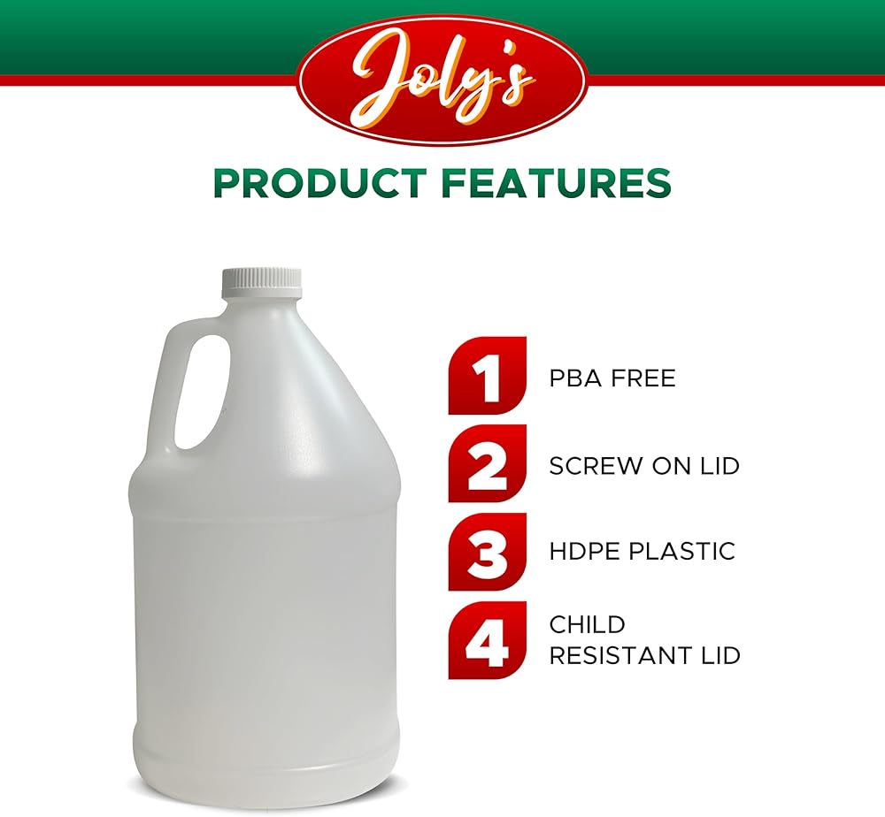 أباريق بلاستيكية سعة 1 جالون من جولي - حاويات HDPE خالية من مادة BPA مع أغطية لولبية آمنة، مقاومة للتسرب ومتينة للاستخدام السكني أو التجاري (عبوة من 4 قطع)