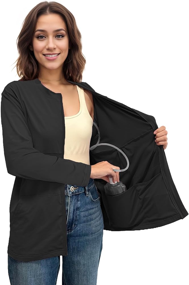قمصان Youdiao لاستئصال الثدي مع جيوب تصريف وأكمام طويلة لاستعادة الثدي يجب أن تمتلك ملابس ناعمة بسحاب in Kuwait