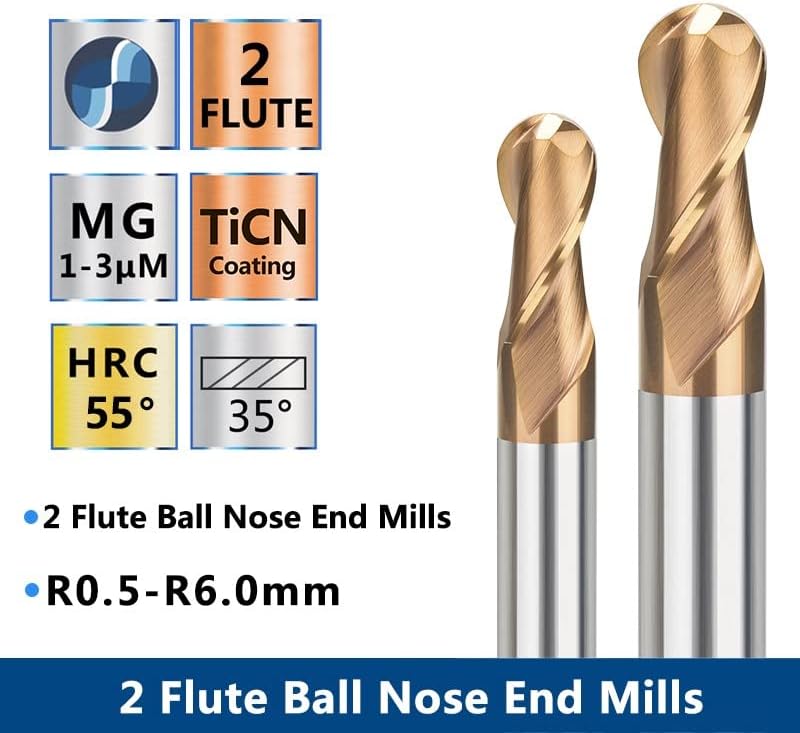 LYZYSNEJ 1 قطعة مطحنة نهاية الكرة الأنف 2-الفلوت CNC راوتر حفارة نحت بت R0.5-R8.0 كربيد قاطعة المطحنة TiCN المغلفة راوتر بت
