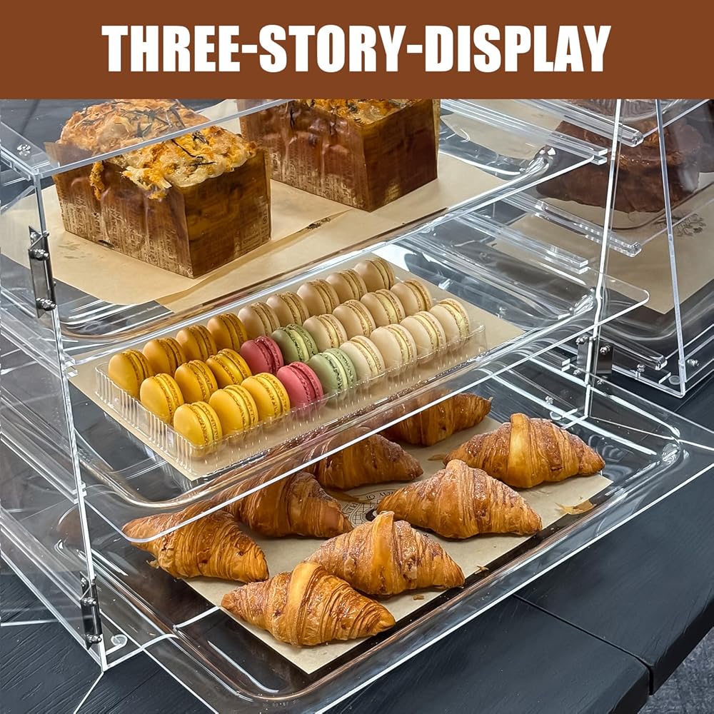 تخزين متعدد الاستخدامات: تصميم ثلاثي الطبقات يناسب أحجام مختلفة من المعجنات والخبز والحلويات والكعك وغيرها من المواد المخبوزة