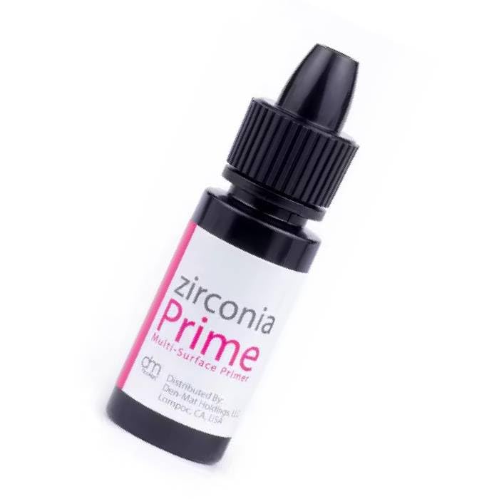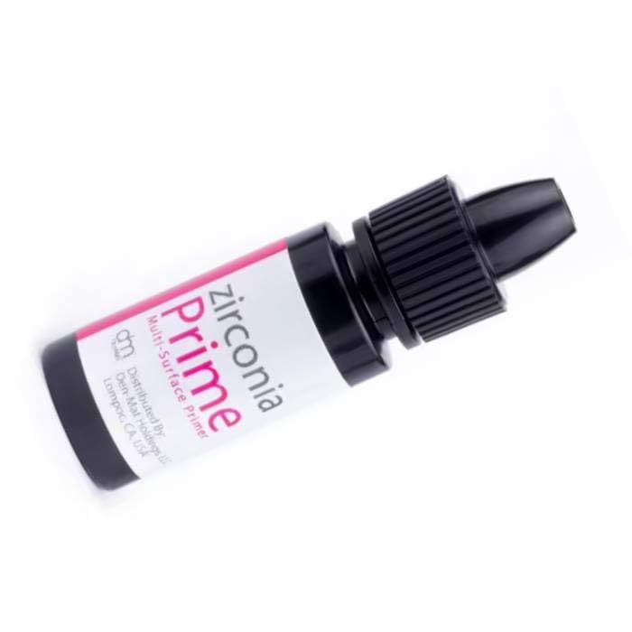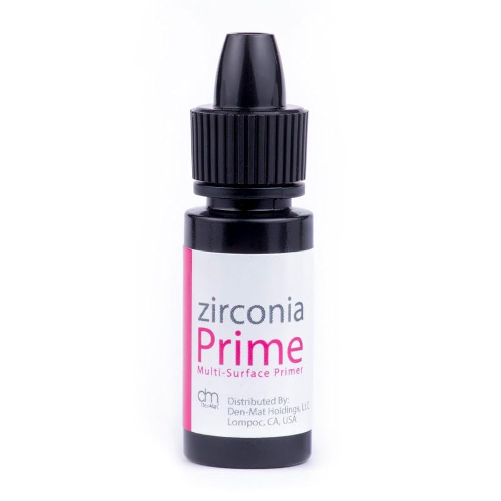 Zirconia Prime is designed to treat the surface of Zirconia, Alumina, and Metal restorations allowing clinicians to provide their patients with lasting restorations. Zirconia Prime enhances the bond between indirect restorative materials, composite resin cements and resin-based bonding agents when preparing the restorations for cementation. Zirconia Prime can also be used to treat the surface when fixing defects of restorations attached to a patient's dentition. 5mL bottle of Zirconia Prime and Instructions