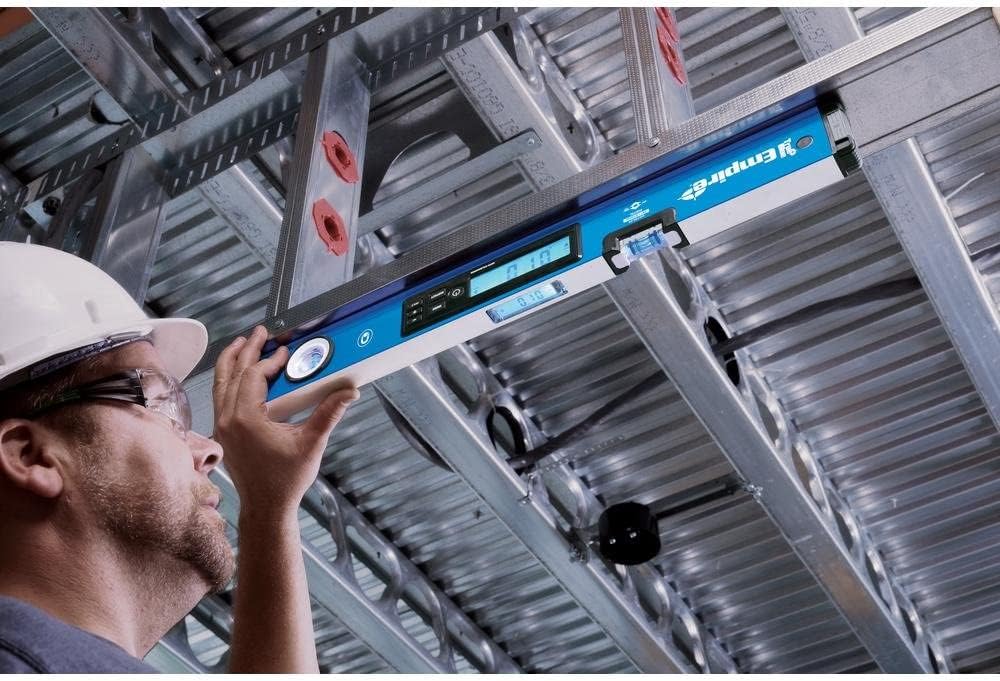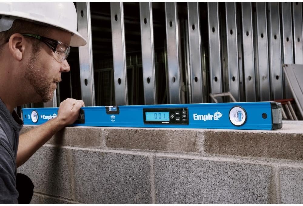 يشتمل على: (1) مستوى صندوق رقمي مغناطيسي أزرق حقيقي 48 بوصة (1) ميزات العلبة: معايرة تلقائية - قراءات رقمية جاهزة على الفور للقياس بدقة عند تشغيلها على 7 أوضاع قياس - الدرجة (تقريبية، عشرية واحدة، عشرية)، بوصة/ قدم (عشري وكسور)، مم/م، ووضع فحص النسبة المئوية - يسمح بتكرار فحص قياسات الدرجة؛ مثالي لمنحدرات ADA شاشة رقمية مزدوجة بإضاءة خلفية - أكبر شاشة عرض في الصناعة مع شاشة بإضاءة خلفية LED عالية/منخفضة مؤشر الصوت - نغمة مستمرة عندما تكون في المستوى ؛ أصوات تنبيه متدرجة عندما يقترب المستخدم من المستوى أو الشاشة الرقمية للقراءة العلوية - قراءات رقمية على سطح العمل العلوي للعرض العلوي - شاشة علوية مقلوبة - تنقلب الشاشة الرقمية تلقائيًا عندما يتم ضبط المستوى في التطبيقات العلوية - وضع توفير الطاقة - اضبط المهلة على المستوى للحفاظ على عمر البطارية (15/30/60/120 دقيقة) وضع التثبيت - قفل القياسات في موضعها للتحقق من القراءة وضع المزامنة - اضبط الشاشة الرقمية على المزامنة مع مغناطيسات الأرض النادرة - توفر قوة تثبيت فائقة (النماذج المغناطيسية فقط) قابلة للإزالة ENDCAPS - أغطية نهاية ممتصة للصدمات قابلة للإزالة بدون أدوات توفر حماية فائقة وأداء للكتابة، حقيبة تخزين واقية - حقيبة حمل مبطنة متوفرة بمقاس 24 بوصة ونماذج أكبر، تصنيف IP65 - حواف مطحونة بدقة محمية من الغبار والماء - ضمانات .0005 بوصة/بوصة. المواصفات الدقة: أوضاع القياس: 7 مستويات رقمية هي شهادة حقيقية على التزام الإمبراطورية بالدقة والأداء والابتكار على مستوى عالمي. يوفر المستوى الرقمي لسلسلة True Blue e105 دقة درجة المفتش وحماية فائقة ومجموعة ميزات متقدمة. تعد سلسلة e105 أول مستوى رقمي يتم معايرته تلقائيًا في الصناعة لتوفير وقت إعداد أسرع وقراءات رقمية فورية عند تشغيل الوحدة. تم تصميم المستويات الرقمية الخاصة بـ Empire لتوفير قراءات سريعة ودقيقة في 7 د