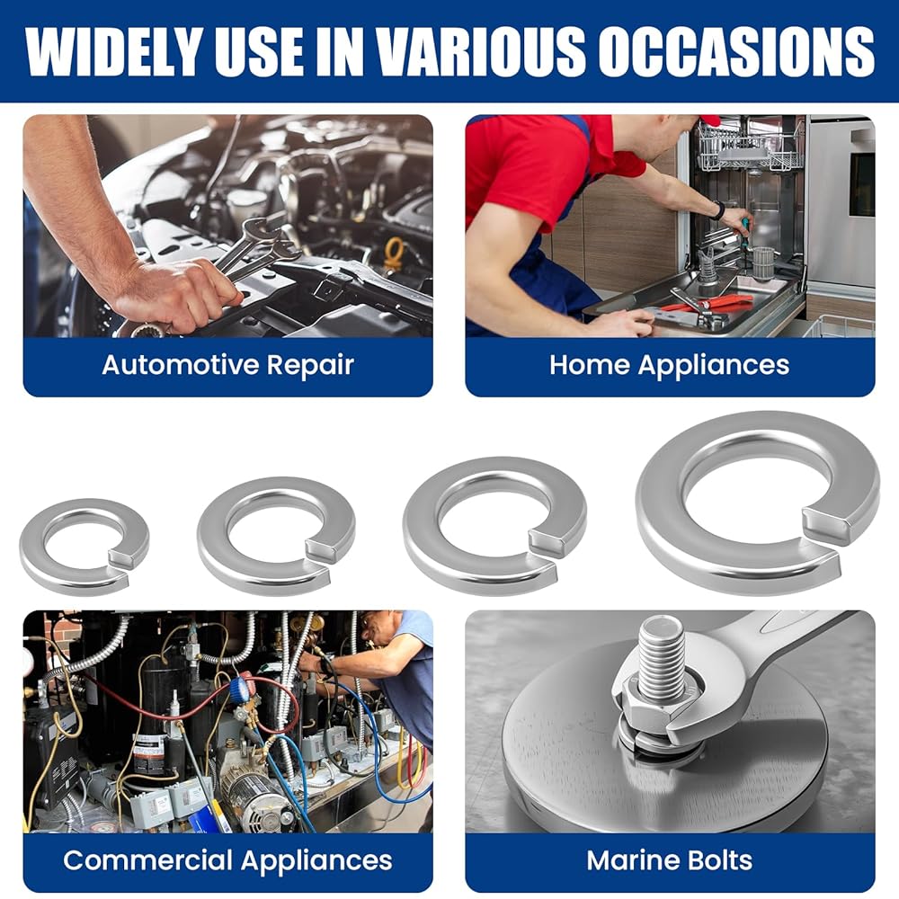 𝐖𝐢𝐝𝐞 𝐀𝐩𝐩𝐥𝐢𝐜𝐚𝐭𝐢𝐨𝐧: مجموعة متنوعة من غسالات القفل الزنبركي sae المصممة للتوصيلات الكهربائية للأجهزة المنزلية والتجارية والسيارات والسفن ذات التوصيلات الملولبة/المثبتة بمسامير
