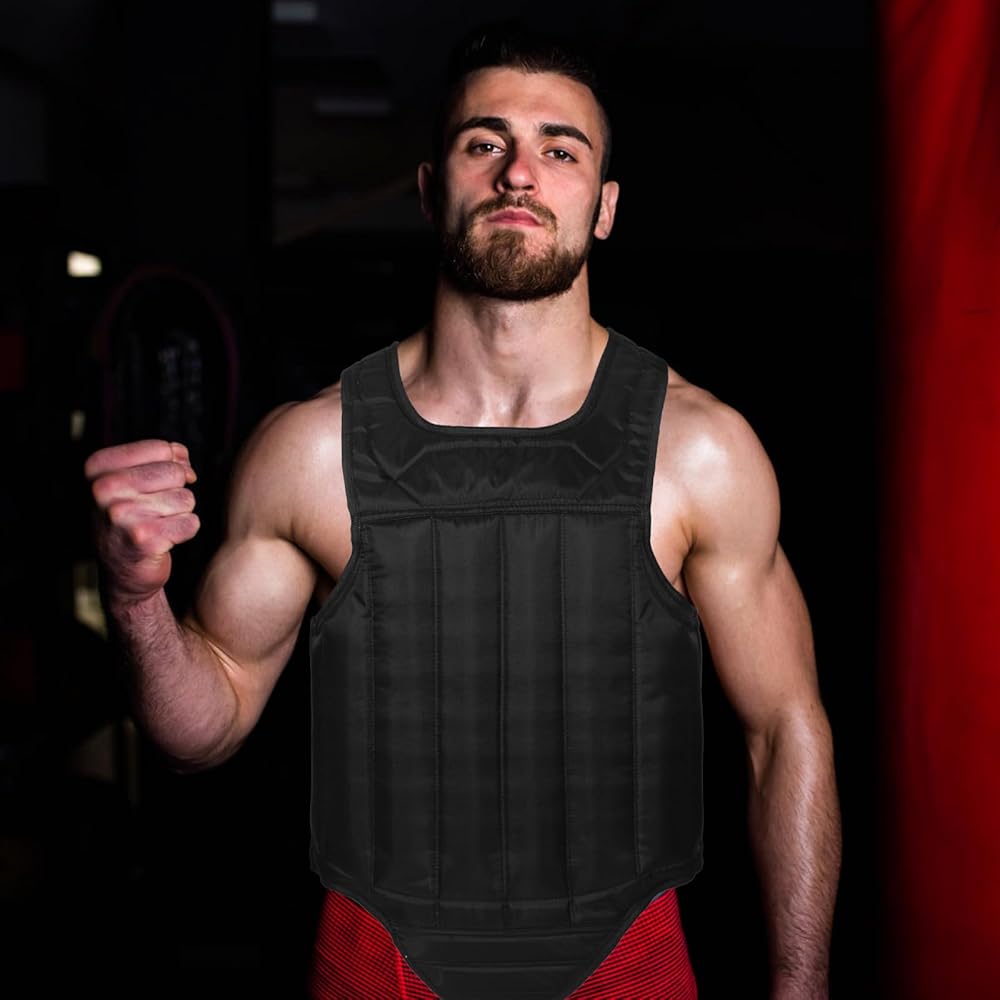 NULYLU ​​واقي الصدر للملاكمة، معدات واقية مريحة للصدر، مقاومة للصدمات، أسود للبالغين، متوسط ​​للتدريب على الفنون القتالية والرياضات القتالية