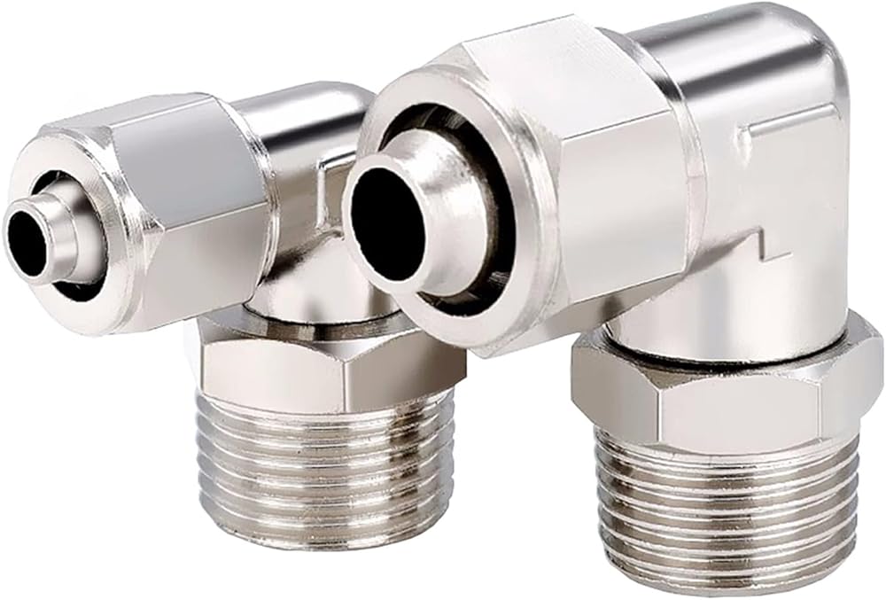 - PL سريع تشديد هوائي سريع موصل بولي خرطوم خرطوم الأنابيب 4 6 8 10 12 مللي متر 360 درجة دوارة L الكوع الخارجي الموضوع 1/8 1/4 3/8 1/2
