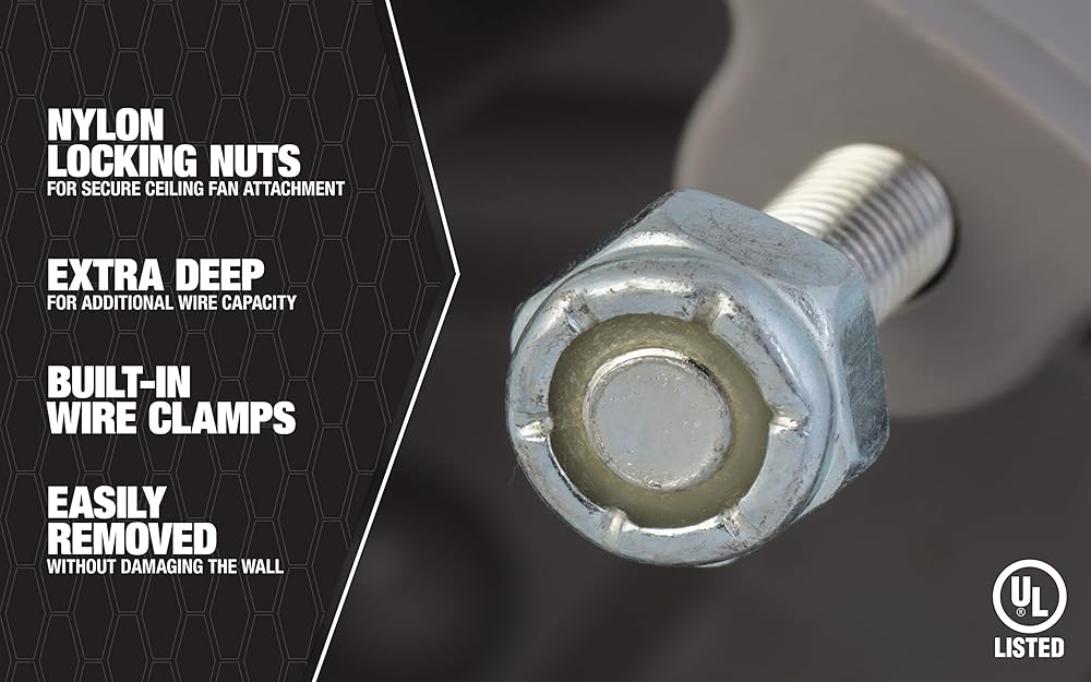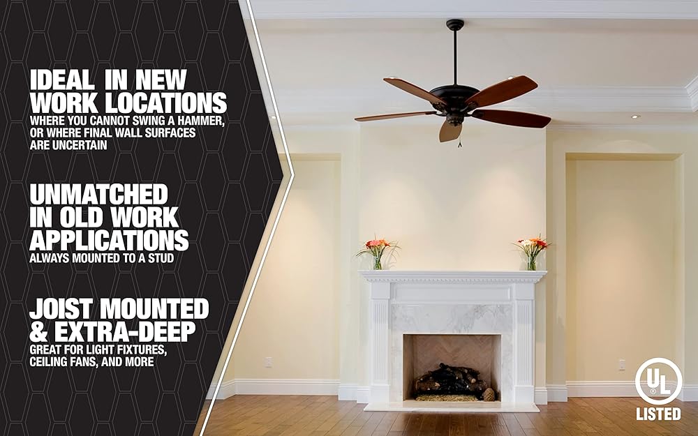 مروحة صندوق ذكي وصناديق تثبيت - تثبت تركيبات الإضاءة والمراوح (MSBFAN فقط) وأجهزة كشف الدخان وأول أكسيد الكربون. أسرع في التركيب من مسمار على الصندوق. يمكن إزالته بسهولة دون التسبب في تلف الحائط. مادة الجدار السميكة للغاية تخلق الثبات والصلابة. أفضل حل للأعمال القديمة وتطبيقات التعديل التحديثي. تصميم شديد التحمل لدعم الأحمال المتحركة. عمق إضافي لأجهزة كشف الدخان وأول أكسيد الكربون أو مكونات مروحة المجداف. ماديسون إلكتريك هي الآن جزء من عائلة ساوث واير قد تختلف عبوة المنتج.