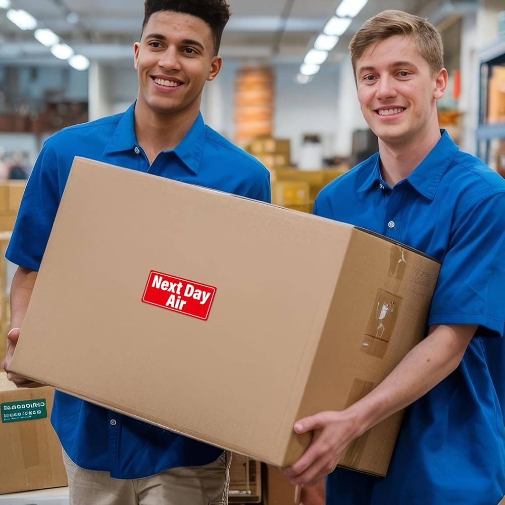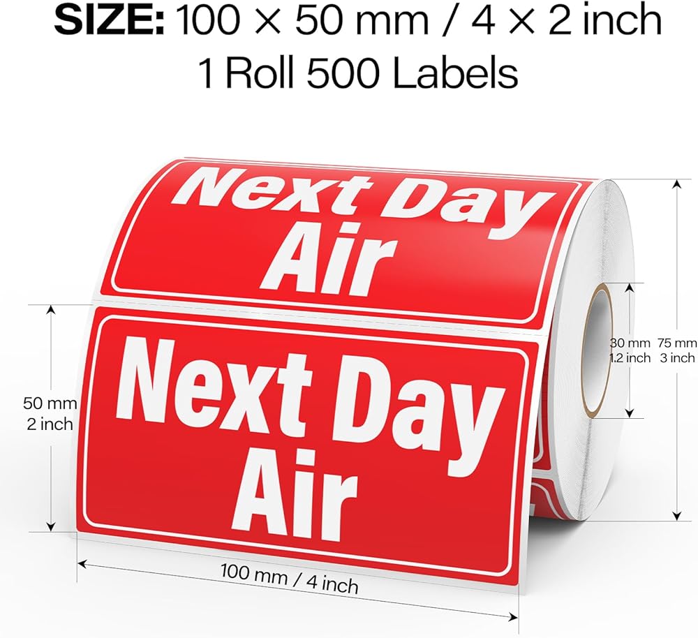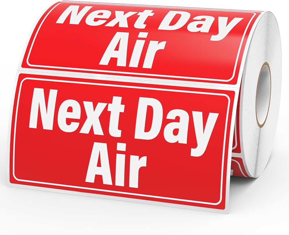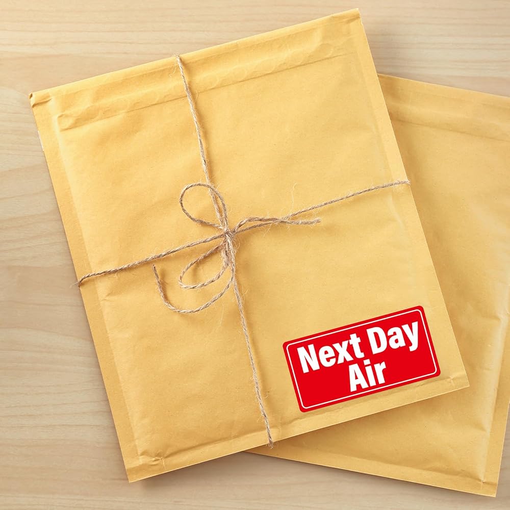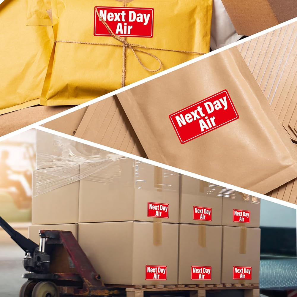 Meitaat 500 قطعة من ملصقات الشحن الجوي في اليوم التالي مقاس 4 بوصات × 2 بوصة ملصقات تحذير حمراء لاصقة مقاومة للماء في اليوم التالي ملصقات الشحن للحزم ذات الأولوية والبريد السريع