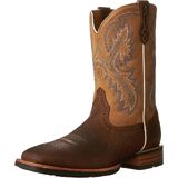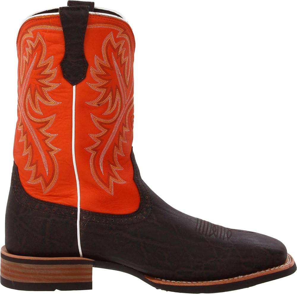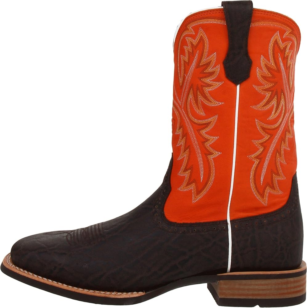 The Ariat's Quickdraw Western Boots for Men are designed to perform in the toughest conditions. These true horseman's boots are durable enough for day-to-day farm chores and riding, yet stylish enough to go with jeans or slacks for that classic Western look. They are crafted with real leather foot and upper with leather lining for extra comfort and durability. An eight-row stitch pattern adds more appeal to classic tastes. The wide square toe design won't bunch and hurt your feet. Ariat's exclusive ATS technology keeps feet riding securely and comfortably all day long providing exceptional stability with the gel-cushioned footbed on the heels. The moisture-wicking footbed lets the feet breathe. These men's boots have a tough and flexible Duratread outsole that provides all-day-long comfort along with ultimate wear resistance for longer life. This durable rubber outsole resists elements and barnyard acids.