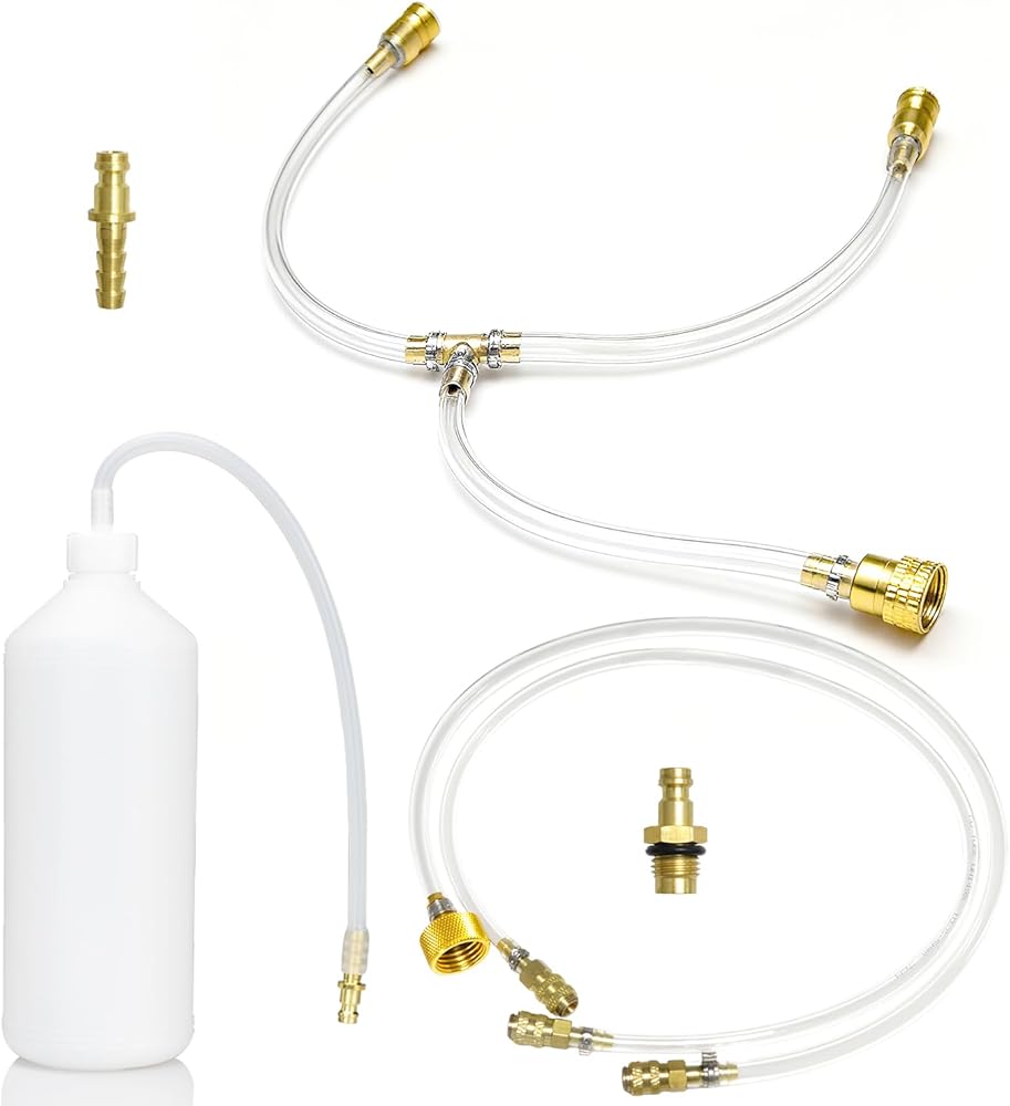 • 【تشغيل نزيف سهل لشخص واحد】تسمح عملية الاتصال البسيطة بإجراء نزيف بدون مجهود - ما عليك سوى توصيل خرطوم التعبئة بزجاجة السوائل ومجموعة سدادات التوجيه الهيدروليكية من سيستار وخرطوم النزيف بالأسطوانة.
