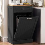 Spurgehom 13 Gallons Tilt Out Trash Can Cabinet Hidden Kitchen Trash Can Freestanding Garbage Recycling Cabinet with Hideaway Drawer Pet Proof Trash Can Holder for Kitchen Living Room, Black
