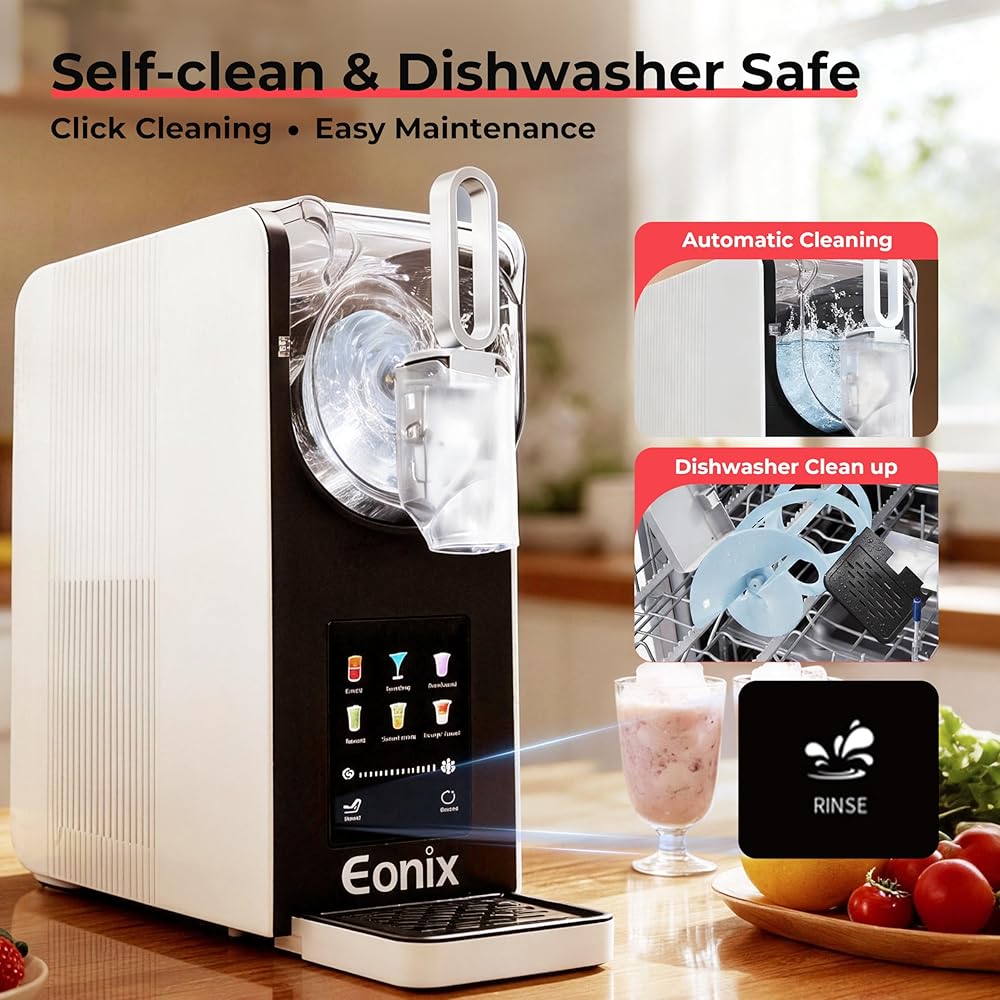 🍦[التنظيف الذاتي أصبح بسيطًا] تتميز آلة EONIX Slushy بوضع التنظيف الذاتي، كل ما يتطلبه الأمر هو ضغطة واحدة لشطف الجهاز وتحديثه. للتنظيف العميق، ما عليك سوى فتح المقبض الخلفي وإزالة البرميل والأجزاء وشطفها بالماء أو وضعها في غسالة الأطباق.