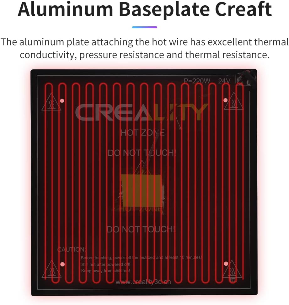 Wide compatibility The hotbed plate is match with carborundum glass plate, PEI plate, and soft magnetic sticker. Suitable for Ender 3/Ender 3 V2/Ender 3 Pro 3D Printers.