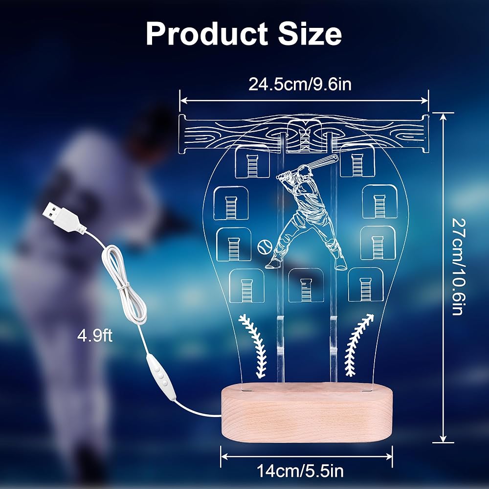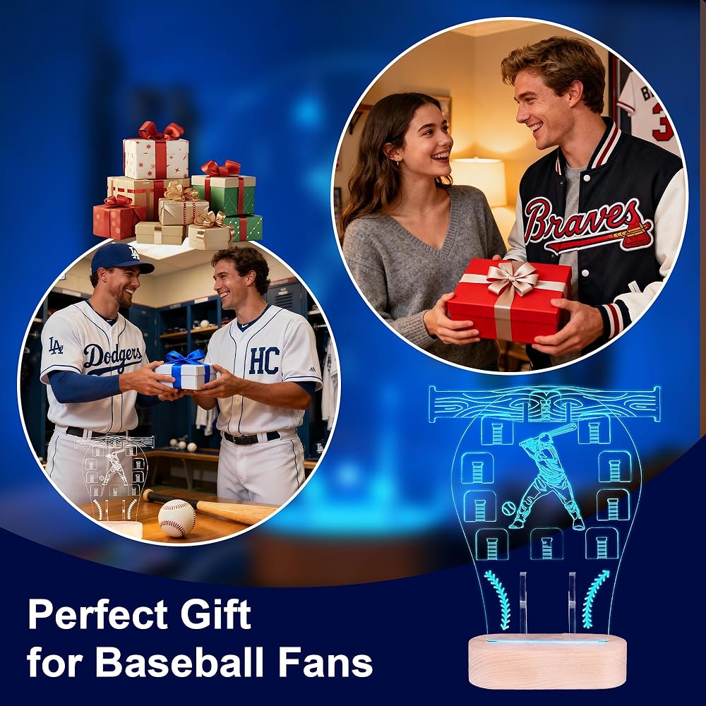 حامل حلقة البيسبول Loscarol المضيئة، 7 ألوان ثلاثية الأبعاد LED أضواء بطولة حلقة العرض، هدايا البيسبول للأولاد، هدايا عيد ميلاد لمحبي اللاعبين، ملحقات البيسبول للأولاد