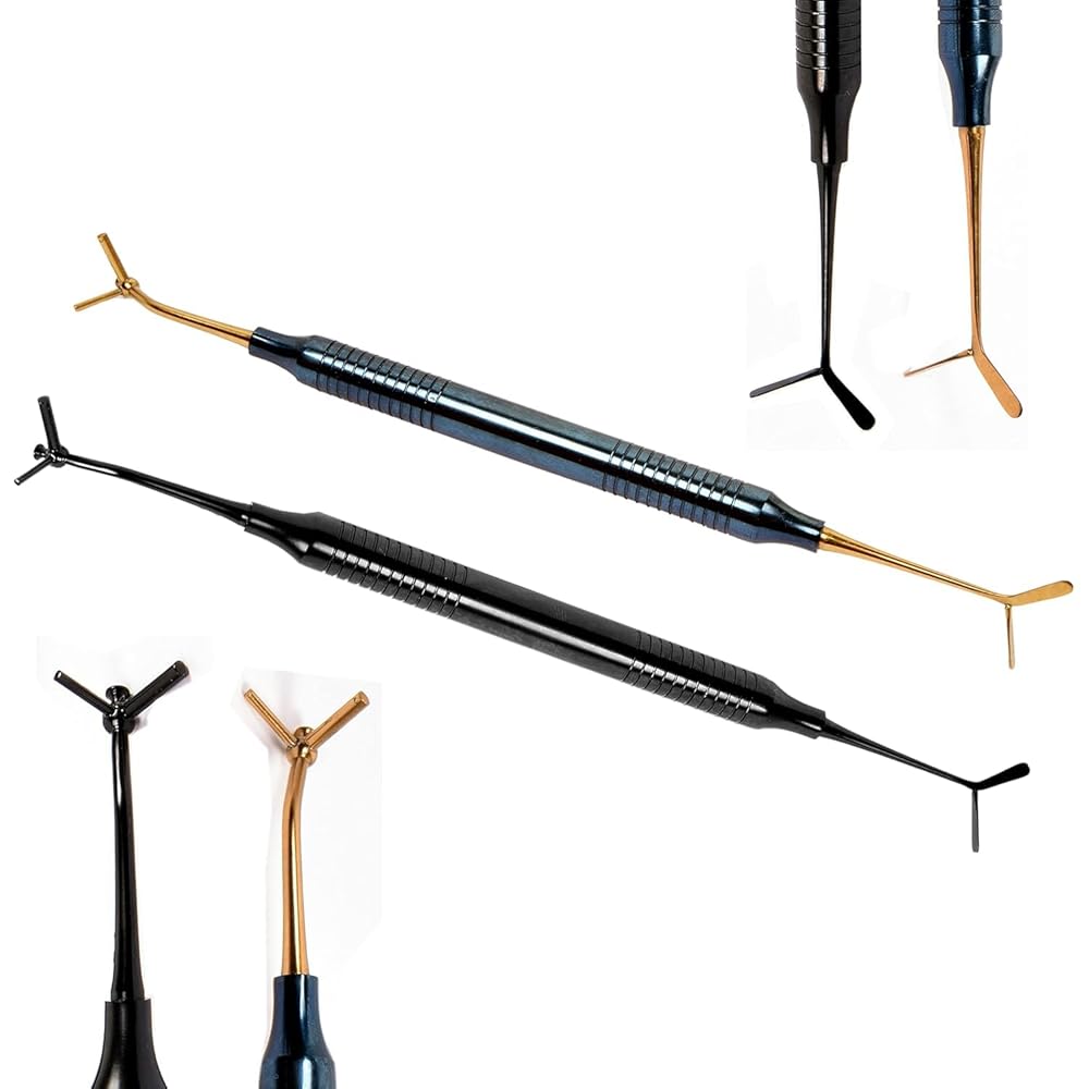 أدوات حشو الأسنان الجديدة 5 في 1 متعددة الوظائف، أداة حشو مركبة 2 مكثف، 2 شفرات و1 قشارة حشو بلاستيكية من البلوط غير لاصقة مطلية بالتيتانيوم (أسود وأزرق) 2 قطعة