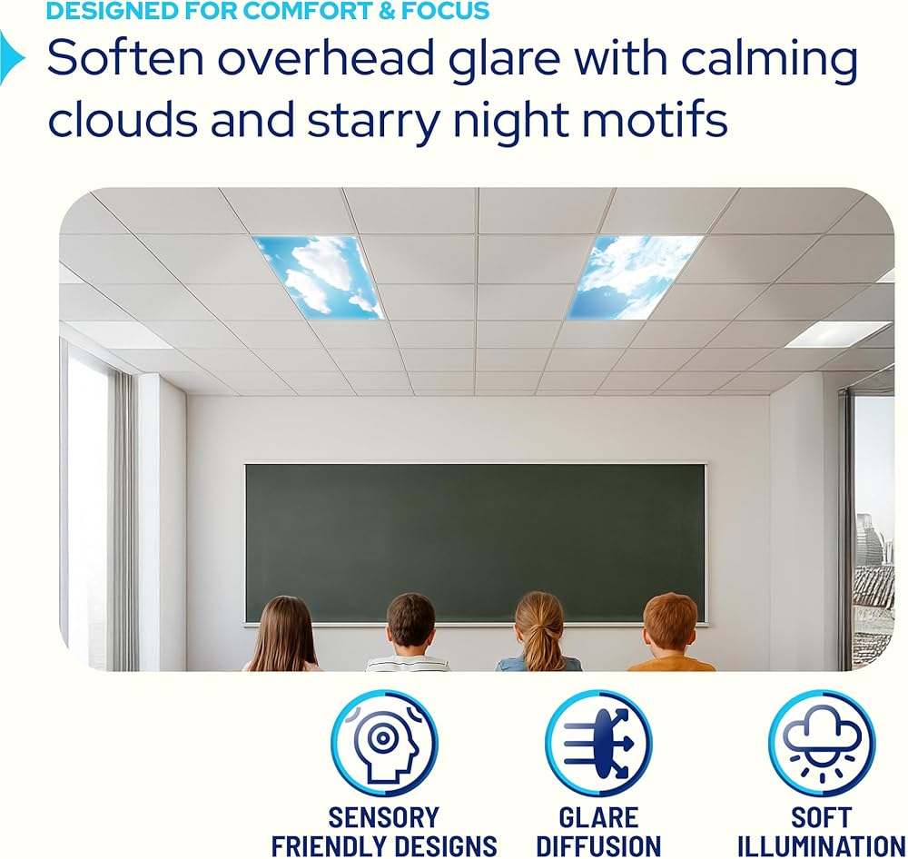 ✅ إعداد سريع وخالي من الأدوات: أغطية الإضاءة الفلورسنت 2x4 هذه للاستخدام في الفصل الدراسي ترتفع في ثوانٍ باستخدام 10 مغناطيسات مدمجة. رائعة للتحديثات السريعة للفصل الدراسي أو مشروعات نوافذ ضوء النهار الاصطناعية.
