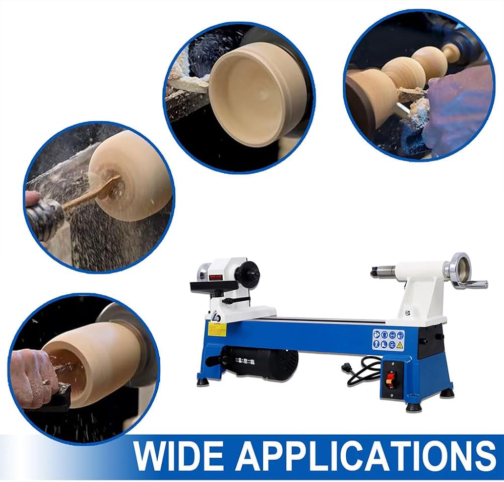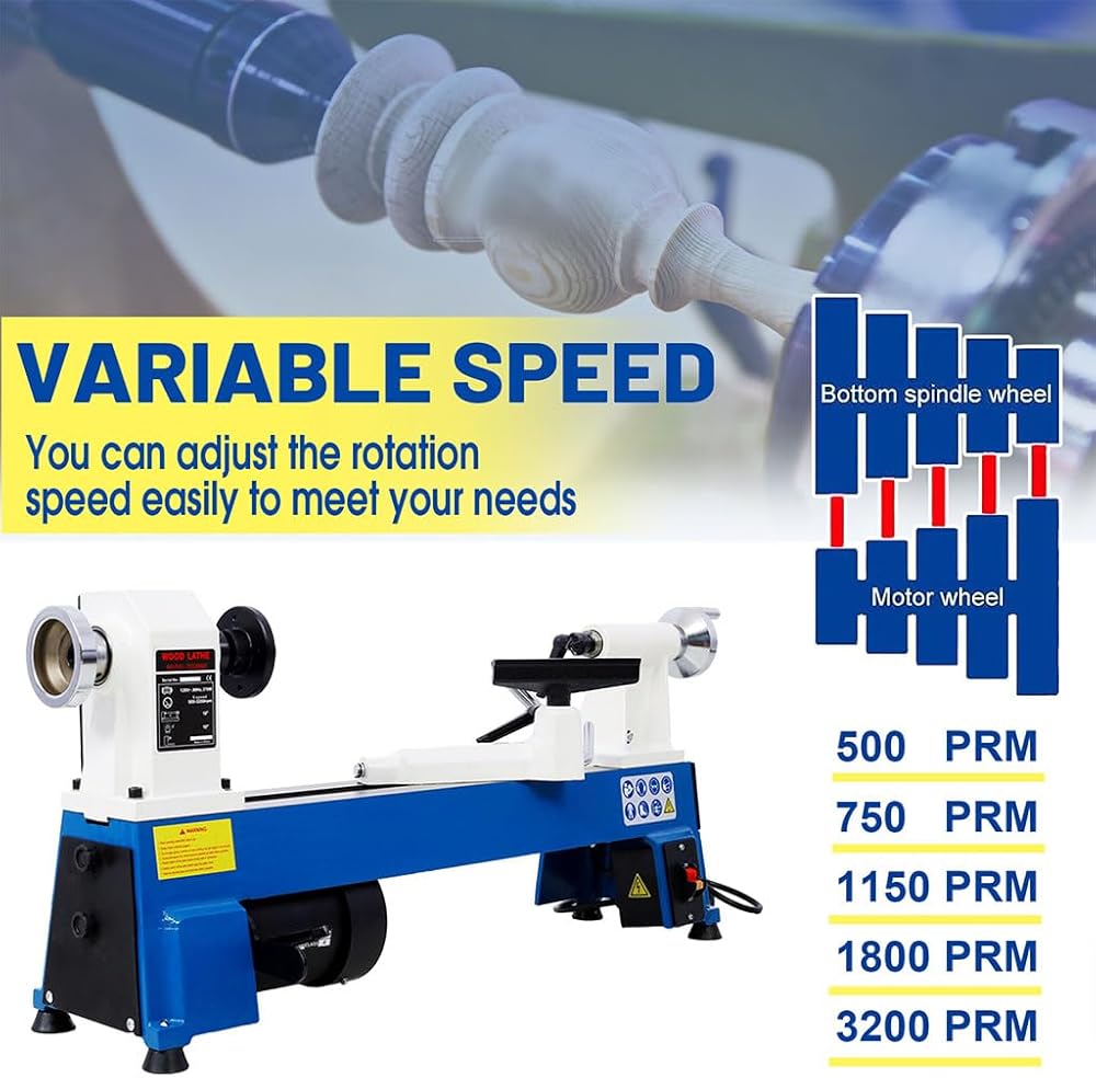 Versatile Speed Control: Features 5 variable operating speeds (500, 750, 1150, 1800, 3200 RPM) easily adjustable to suit various turning needs, providing precision and control for different workpieces.