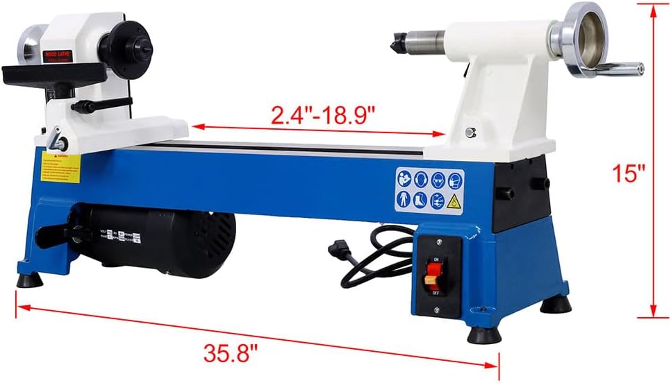 Enhanced Work Capacity: Offers ample space for diverse projects with an 18-inch (45.7 cm) distance between centers for longer pieces and a 10-inch (25.4 cm) swing over bed for larger pieces, adjustable via hand wheel and tailstock.