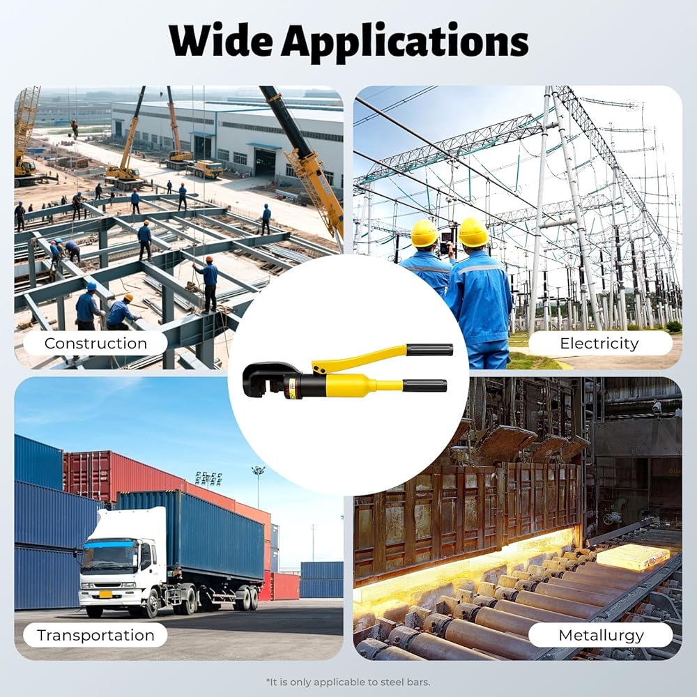 • Rugged Construction for Multi-Industry Use: Built from durable iron with a corrosion-resistant finish, this hydraulic rebar cutter is made to last on job sites. It is the essential portable steel bar cutting tool for professionals in construction, electrical work, oil & gas, and metallurgy, providing a critical solution for cutting reinforcement bars, bolts, and chain links