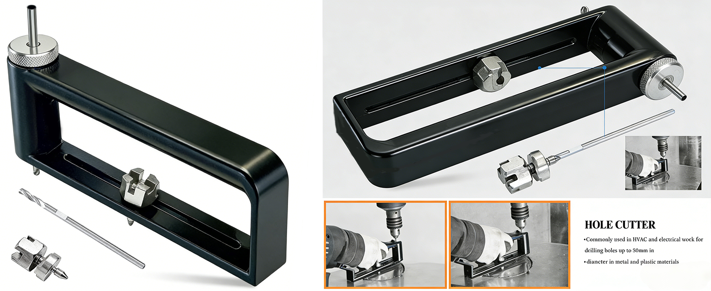 【حتى المبتدئين يمكنهم بسهولة البدء في قطع الدوائر المعدنية】الهيكل القابل للتعديل لا يتطلب معايرة معقدة؛ قاطع الثقوب يحتاج فقط إلى تعديلات بسيطة لقفل قطر الثقب المستهدف. أداة قطع أنابيب التكييف، عملية القطع مستقرة وسلسة، دائرة قطع أداة المنشار تقلل بشكل فعال من أخطاء صنع الثقب، أدوات ثقب الصفائح المعدنية