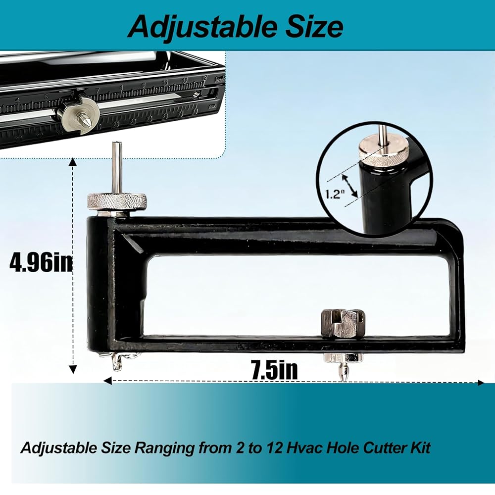 أداة ثقب القطع المعدنية مقاس 2 بوصة إلى 12 بوصة لـ 1/4 بوصة، طقم لوحة دائرة قطع الصفائح مع 1 قطع إضافية HC1B، أدوات قطع مجاري الصفائح المعدنية لأنابيب HVAC/قاطع فتحات مجاري الهواء، منشار فتحات دوائر قابلة للتعديل