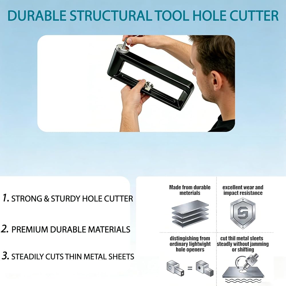 【قاطعة ثقب أدوات ذات هيكل قوي ومتين】مصنوعة من مواد متينة، قاطعة ثقب الأدوات توفر مقاومة ممتازة للتآكل والصدمات، أداة ثقب القطع تميزها عن فتاحات الفتحات العادية خفيفة الوزن. أداة قطع الفتحات يمكنها قطع الصفائح المعدنية الرقيقة بثبات دون تشويش أو تغيير أدوات الفتحات المعدنية