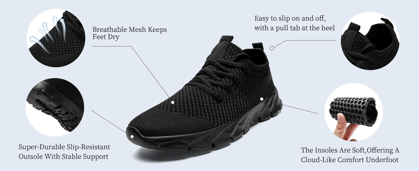 【مضادة للانزلاق】--تتميز الأحذية الرياضية للرجال/النساء بنعل EVA مقاوم للانزلاق ومقاوم للاهتراء، ومصممة لمتانة طويلة الأمد دون ضرر سهل. فهي مرنة بحرية لتتوافق مع أنماط الحركة الطبيعية للقدم أثناء النشاط.