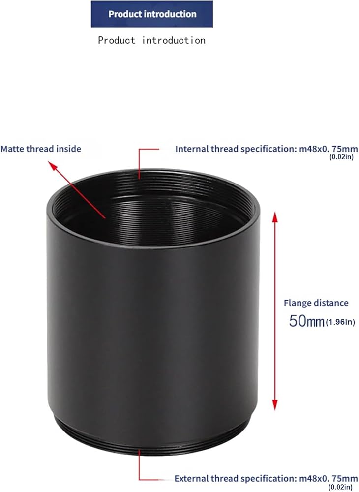 • ♬precisions engineered with anodized aluminum construction, the extension tube boasts matte finished internal threads to minimize light reflection and 45mm inner diameter for optimal opticals alignment, complemented by 50mm focal length capability.