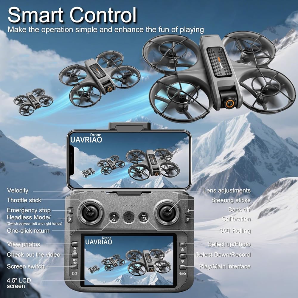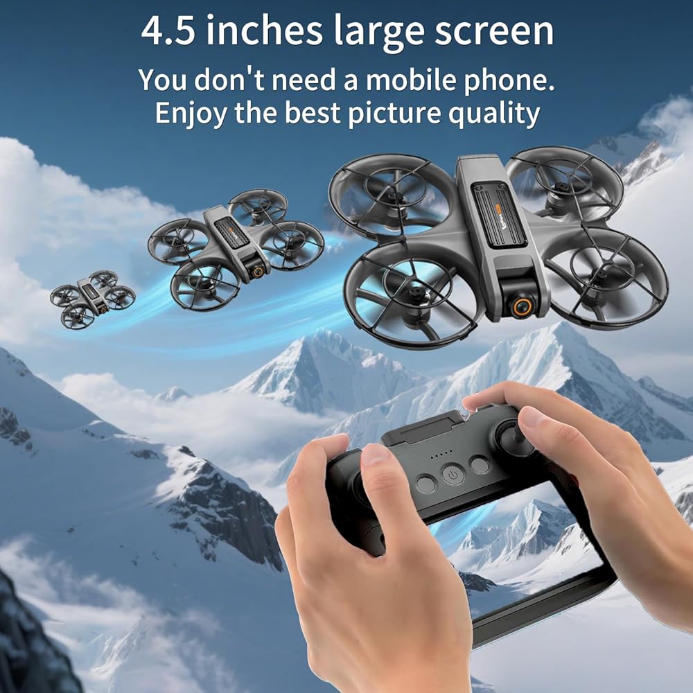 【طائرة بدون طيار FPV بشاشة كبيرة 4.5 بوصة مع نقل عالي الدقة في الوقت الحقيقي】 استمتع بتجربة رؤية غامرة من منظور الشخص الأول (FPV) مع هذه الكاميرا المتقدمة بدون طيار. توفر الشاشة الكبيرة مقاس 4.92 بوصة عالية الدقة على جهاز التحكم عن بعد تغذية فيديو واضحة تمامًا في الوقت الحقيقي بدون أي تأخير، مما يضعك في مقعد الطيار. تجمع هذه الطائرة بدون طيار RC بين وضع التدفق البصري والجيروسكوب ذي 6 محاور، وتضمن تحليقًا مستقرًا بشكل استثنائي وطيرانًا سلسًا، مما يمنع الانحراف حتى بالنسبة للمبتدئين. الطيارين.