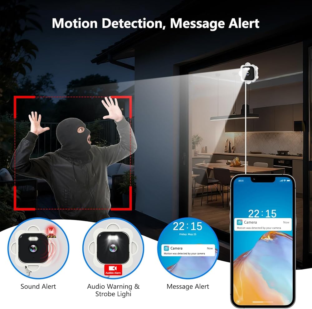【كشف حركة PIR وتنبيهات ذكية】: مجهزة بمستشعر PIR عالي الحساسية، تكتشف هذه الكاميرا الداخلية الحركة بدقة مع تقليل التنبيهات غير الضرورية. عند اكتشاف النشاط، تسجل الكاميرا مقاطع قصيرة وترسل إشعارات فورية إلى هاتفك. كجزء من الكاميرات الحديثة لأمن المنزل، فهي تشتمل على صفارة إنذار اختيارية وضوء كشاف لمزيد من الوعي. ملحوظة: اتصال تطبيق الهاتف الذكي فقط. غير متوافق مع أجهزة الكمبيوتر الشخصية أو الأجهزة اللوحية أو NVRs أو DVRs.