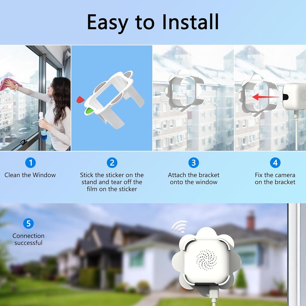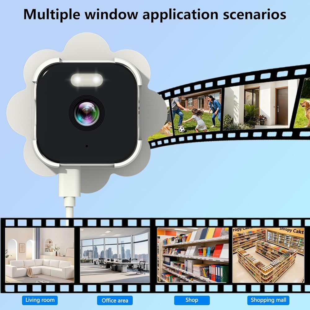 【تركيب قابل للتقشير والعصا لعرض النوافذ】: تتميز كاميرا النافذة هذه من خلال الزجاج بنظام تركيب سريع التقشير والعصا للتركيب بدون أدوات. لا حاجة للحفر ولا تترك أي بقايا، مما يجعلها مثالية للشقق والإيجارات. تعمل بشكل مثالي كواحدة من أكثر كاميرات النوافذ عملية لأمن المنزل، مما يسمح بوضعها في الداخل مع رؤية خارجية.
