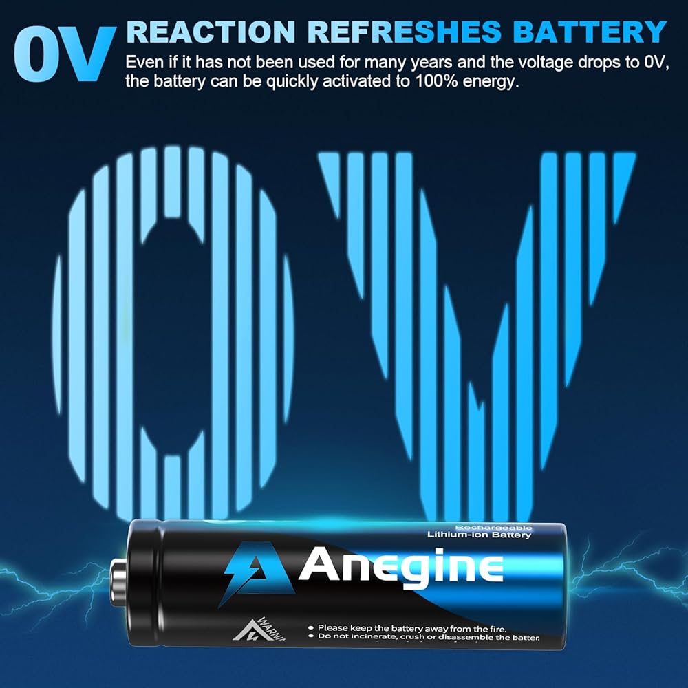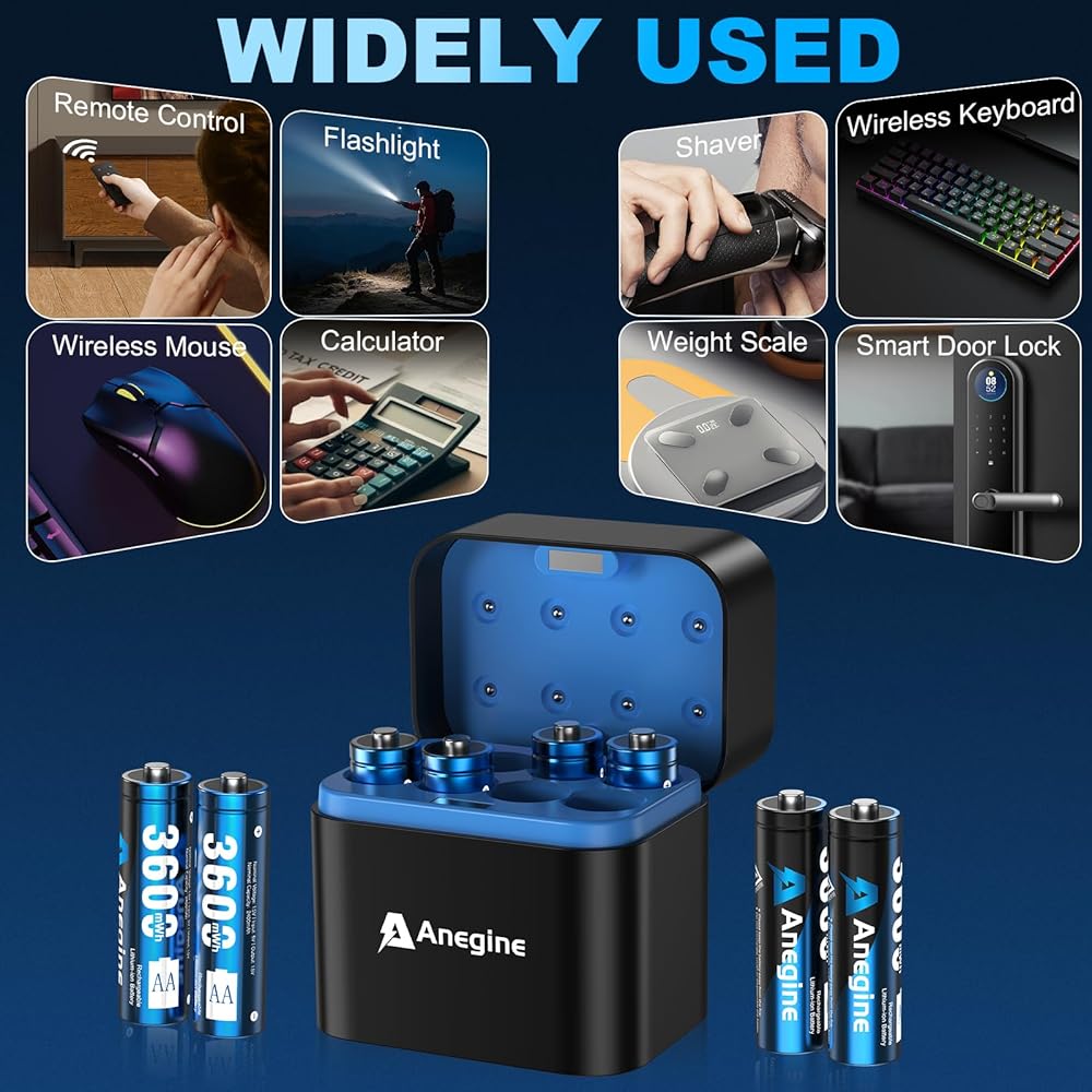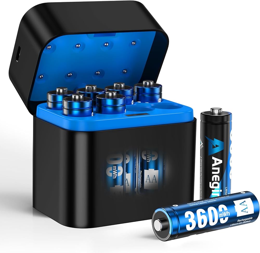 Anegine Rechargeable Lithium AA Batteries 8 Pack with Fast Charger, 3600mWh AA Lithium Batteries for Blink Outdoor Camera, 1.5V Constant Output Blink Camera Batteries Recharge up to 2000+ Times(Blue)
