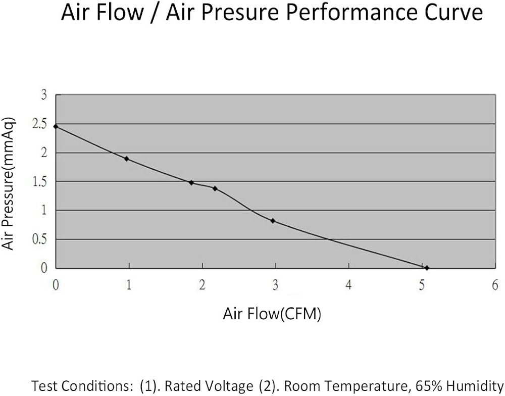 تدفق الهواء: 5.32 قدم مكعب في الدقيقة، السرعة: 6000 دورة في الدقيقة، الضوضاء: 26.26 ديسيبل
