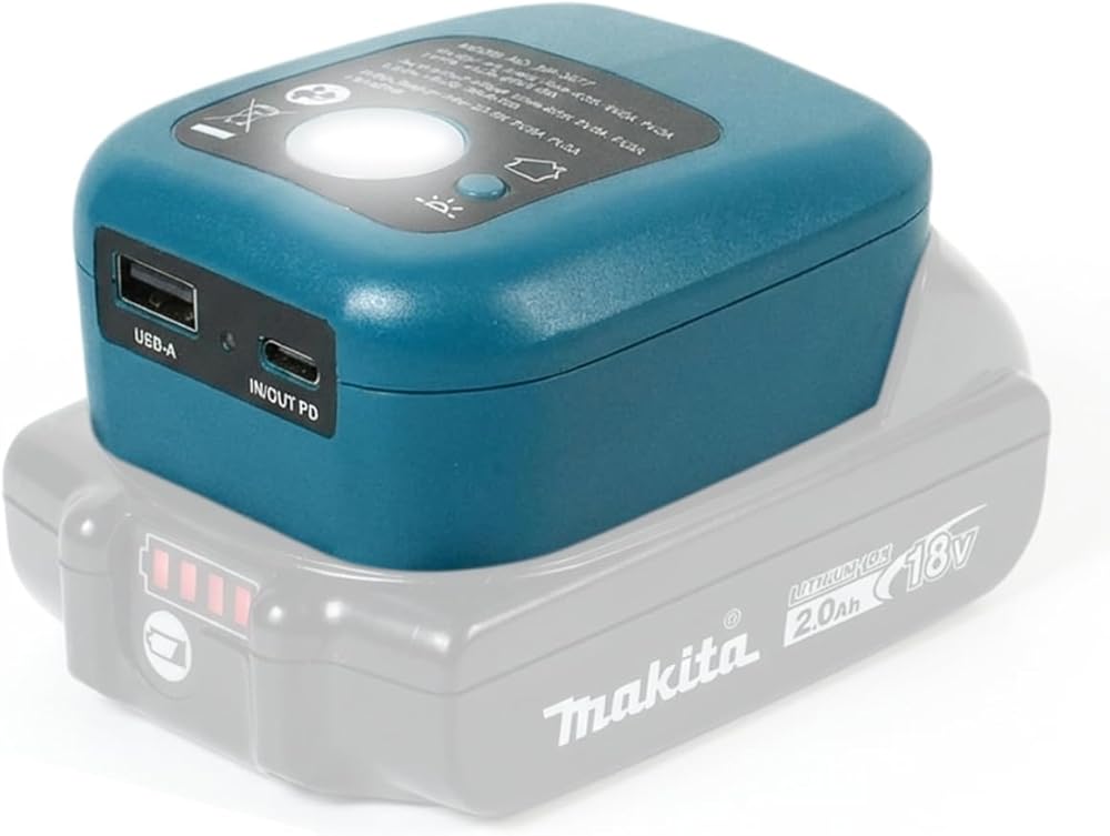 منفذ USB ونوع C للشحن المتزامن - اشحن هاتفك عبر USB-A أثناء تشغيل الكمبيوتر اللوحي أو أي جهاز آخر باستخدام USB-C. يحافظ محول بطاريات ماكيتا الفعال هذا على تشغيل أغراضك الأساسية وتنظيمها، سواء كنت في موقع عمل أو تقوم بمهام منزلية.