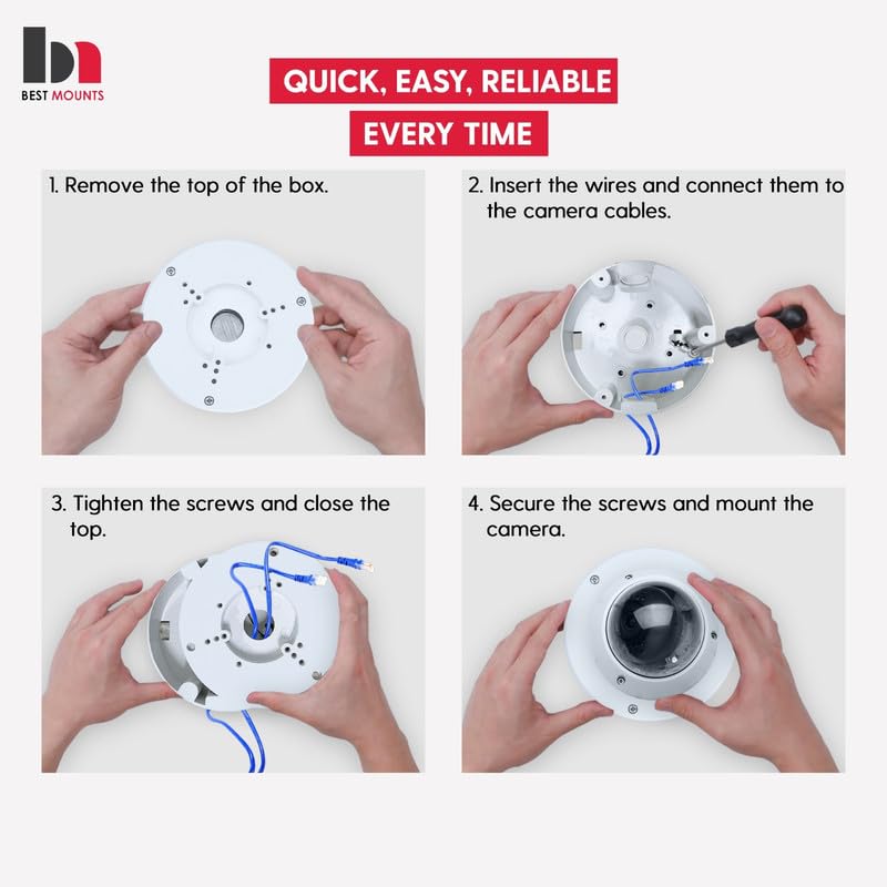 𝐄𝐀𝐒𝐘 𝐈𝐍𝐒𝐓𝐀𝐋𝐋𝐀𝐓𝐈𝐎𝐍: The security camera junction box comes with solid screws and offers easy mounting, saving you from worrying about damaging your bracket. Its sturdy, reusable design makes installation simple, allowing you to mount it according to your specific needs