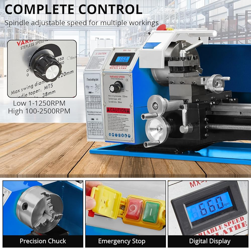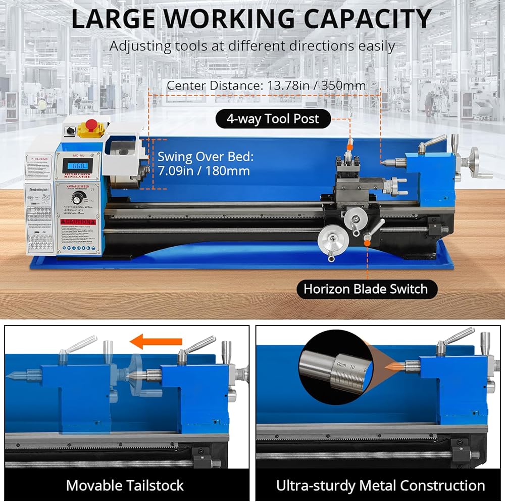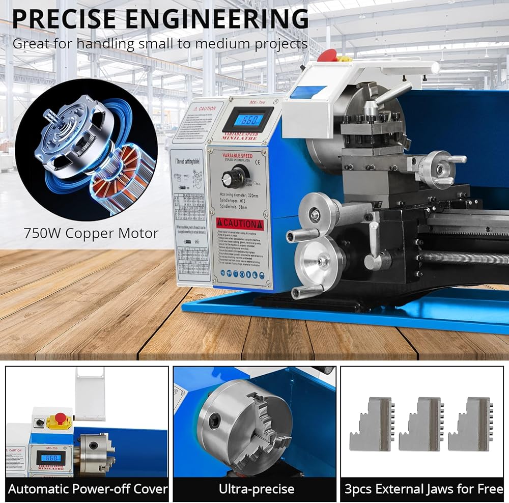 Powerful Performance: Equipped with a robust 750W motor, this mini metal lathe delivers exceptional threading, turning, and drilling capabilities for all your metalworking projects.