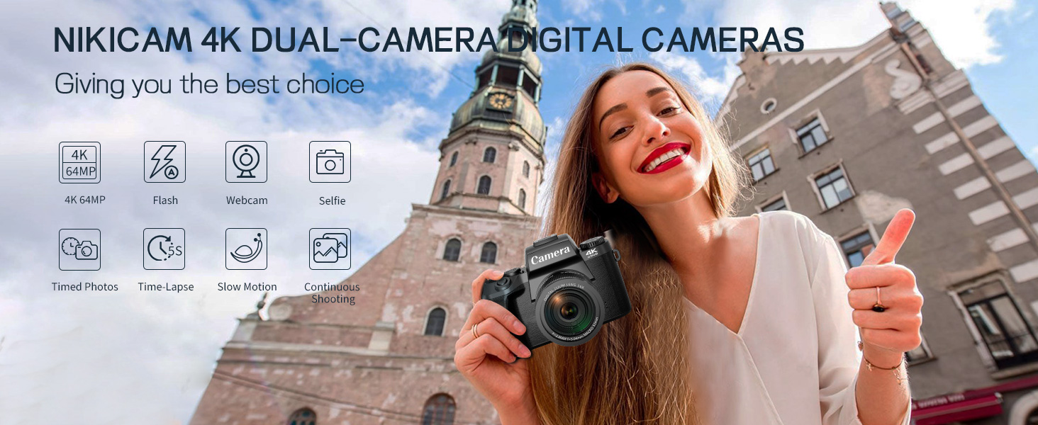 كاميرات 4K 64 ميجابكسل للتصوير الفوتوغرافي: يمكن لهذه الكاميرا الرقمية للتصوير الفوتوغرافي التقاط أغلى لحظات الحياة بدقة فيديو 4K وصور 64 ميجابكسل، مما يوفر تجربة تصوير سلسة لكل من عشاق التصوير الفوتوغرافي والمبتدئين.