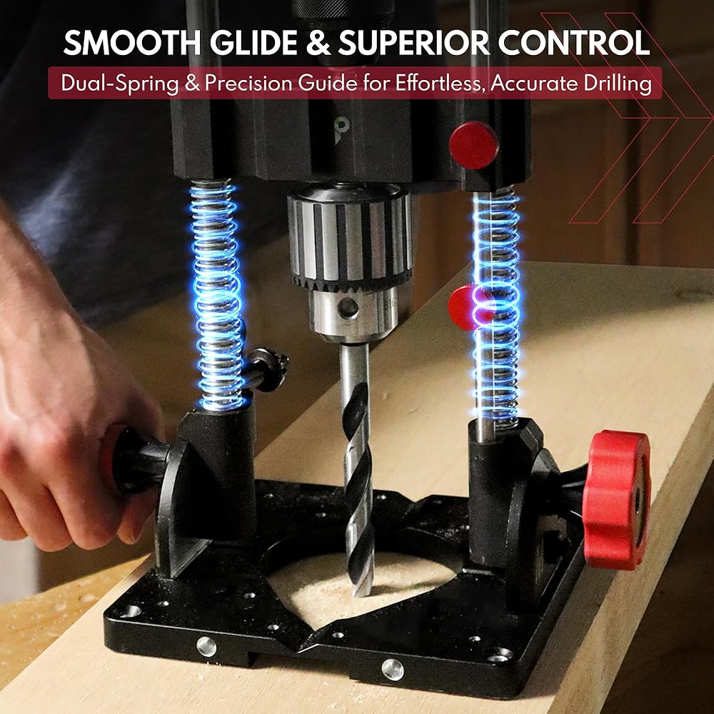 Dual Spring Design and Large Rubber-Coated Handle work together to offer exceptional balance, reduced operator fatigue, and enhanced control during the drilling process