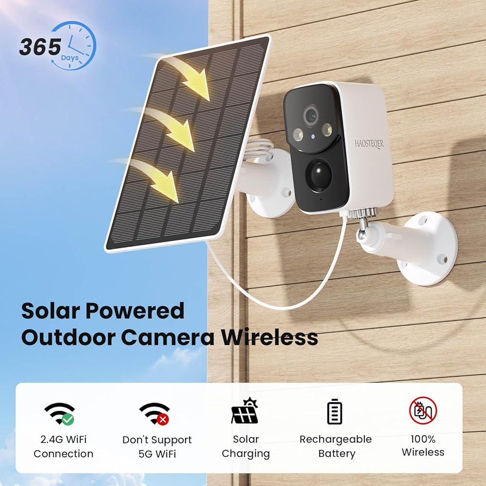 تتميز أحدث كاميرا WiFi اللاسلكية الخارجية بكل ما تحتاجه لمراقبة منزلك لمدة 356 يومًا من خلال الطاقة الشمسية اللاسلكية، وفيديو فائق الوضوح بدقة 2K، ورؤية ليلية كاملة الألوان، وصوت ثنائي الاتجاه، وواي فاي أقوى 2.4 جيجا لمسافة أطول.