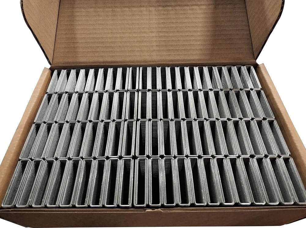نوع/حجم المثبت - 15.5 قياس 2 بوصة طول 1/2 بوصة دبابيس أرضية التاج؛ تأتي هذه الدبابيس في شرائط مجمعة بالغراء وتتميز بنقطة إزميل