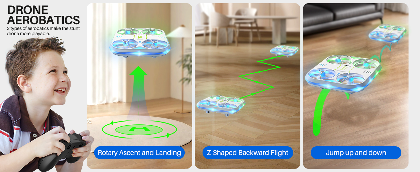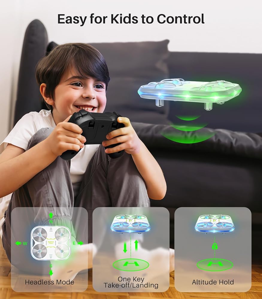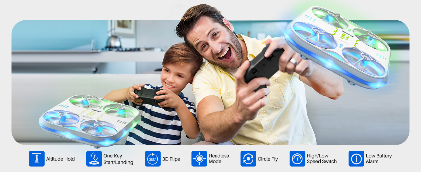 【أضئ رحلتك】تتميز هذه الطائرة بدون طيار الداخلية بحلقة خارجية مذهلة من مصابيح LED، مما يوفر الرؤية ويضيف الأناقة إلى كل رحلة. سواء كانت تتجول خلال النهار أو تضيء سماء الليل، فمن المؤكد أن هذه الطائرة بدون طيار للأطفال ستكون اللعبة الطائرة الأكثر جذبًا للانتباه على الإطلاق.