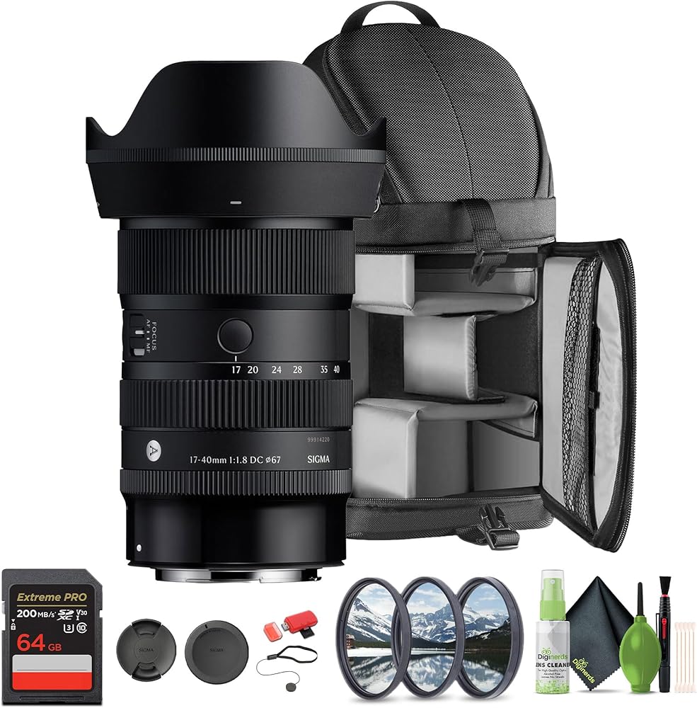Bundle Includes: Sigma 17-40mm f/1.8 DC Art Lens (Canon RF) Backpack, Filter Kit, Memory Card, Card Reader, Lens Cap Keeper, Digital Cleaning Solution, Cleaning Cloth,Tabletop Tripod, Air Blower, Cleaning Brush